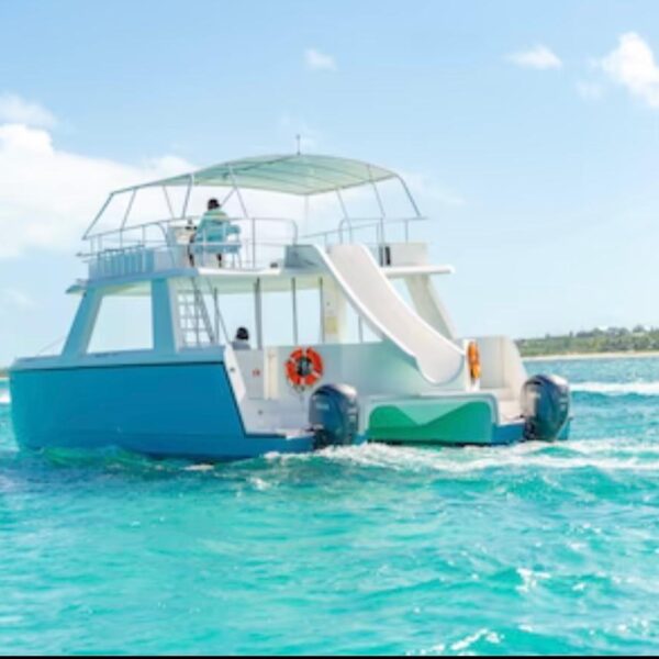 This private catamaran charter in Turks and Caicos features a thrilling onboard water slide a major highlight that makes it one of the top catamaran excursions in Turks and Caicos for groups, families, and celebrations. Swim, snorkel, and relax while enjoying music, good vibes, and stunning island views across the Caicos Cays.